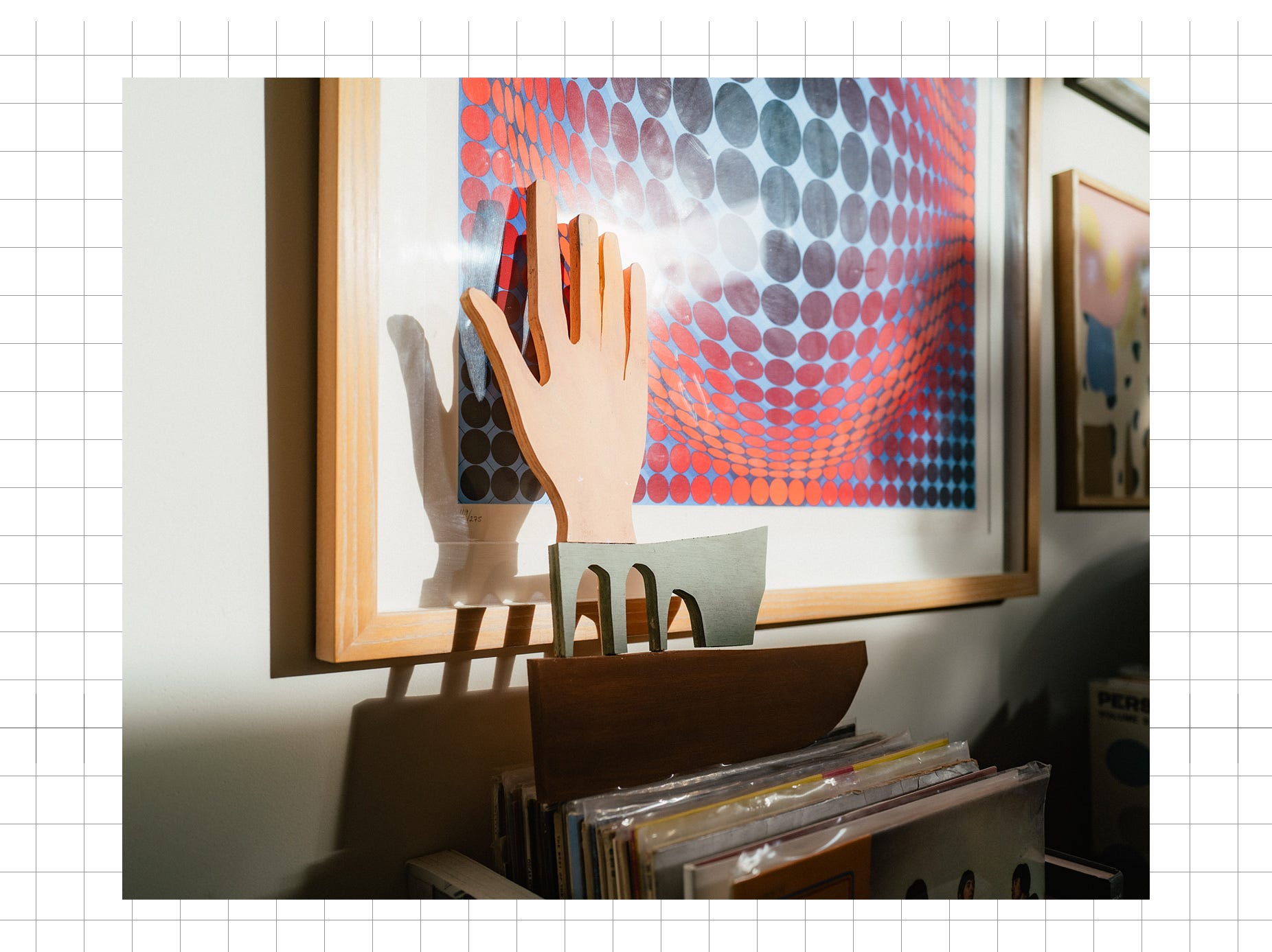 I was happy to see my friend Jon Huck’s recent show at the Bag in Silverlake, last month. I picked up this painted wood hand sculpture, currently resting on a box of records while I work out where (and how) to hang it. You can find more of Jon’s work here and here.